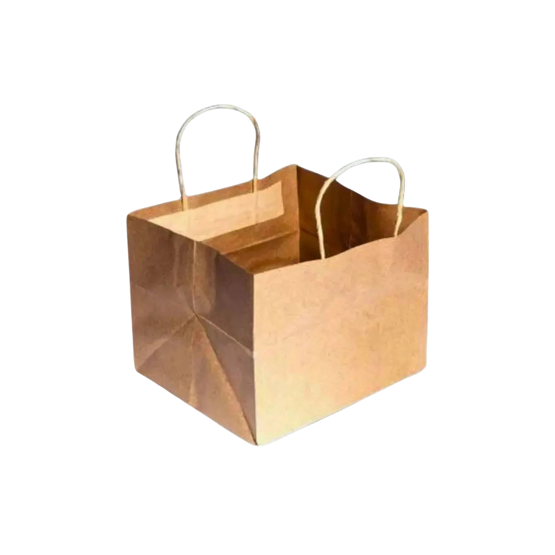The 10‑Inch Kraft Paper Carry Bag is sized to neatly fit standard pizza boxes and wide bakery trays while still leaving enough height for easy handling. Its reinforced base and strong handles are designed to support the weight of hot food without deforming, helping QSRs and pizzerias offer a cohesive, eco‑friendly takeaway experience.