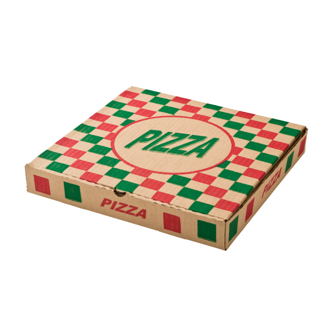 Built from strong food‑grade corrugated kraft, this box supports heavy 12 inch pizzas while remaining fully recyclable and stackable in delivery bags. The bold generic print enhances perceived value and brand recall, making it ideal for outlets that want ready‑made printed packaging without long lead‑time custom jobs.