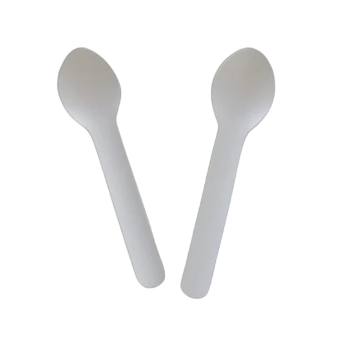 160 mm white paper spoon for soups, gravies and desserts, offering a smooth mouthfeel and strong scoop in a fully plastic‑free format.