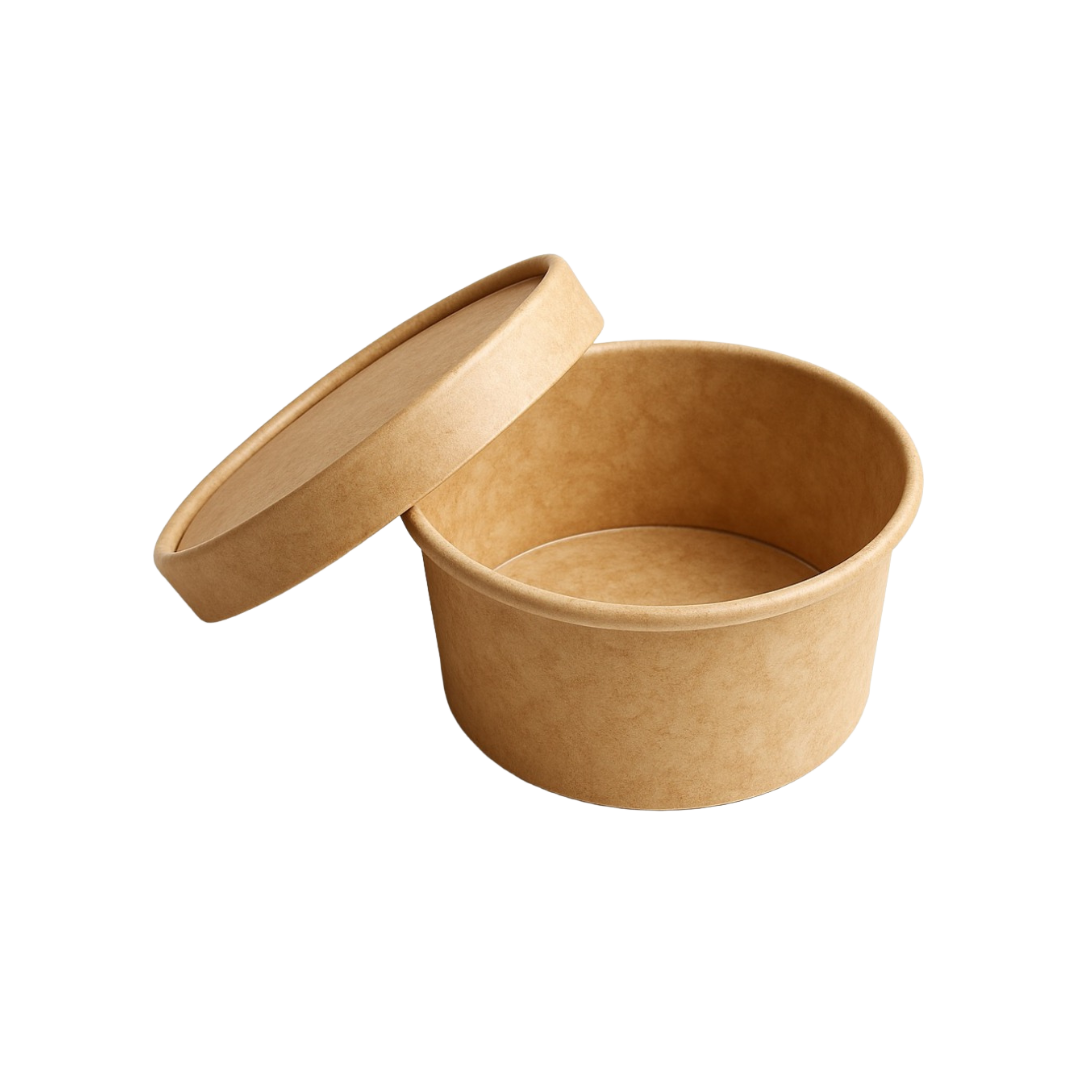 350 ml kraft paper tub with paper lid, ideal for soups, snacks and single‑serve meals, offering sturdy, sustainable takeaway performance.