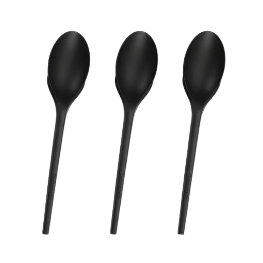 6 inch bio‑plastic spoon suitable for main‑course and soups, combining a strong, comfortable grip with reduced environmental impact versus regular plastic.