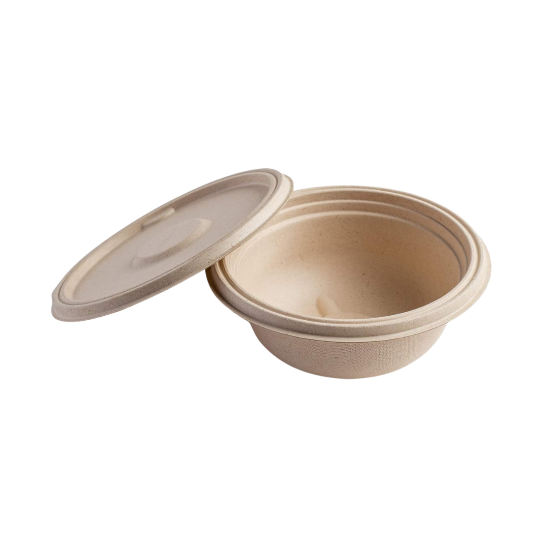 Large 750 ml compostable bagasse bowl with secure lid, ideal for meal bowls, pasta and biryani, combining leak resistance with sustainable packaging.