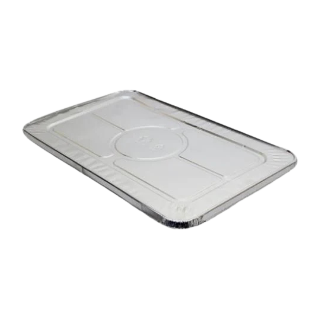 Rigid full‑deep aluminium lid designed to lock onto large catering trays, ensuring secure coverage, heat retention and hygienic transport for buffets and bulk orders.