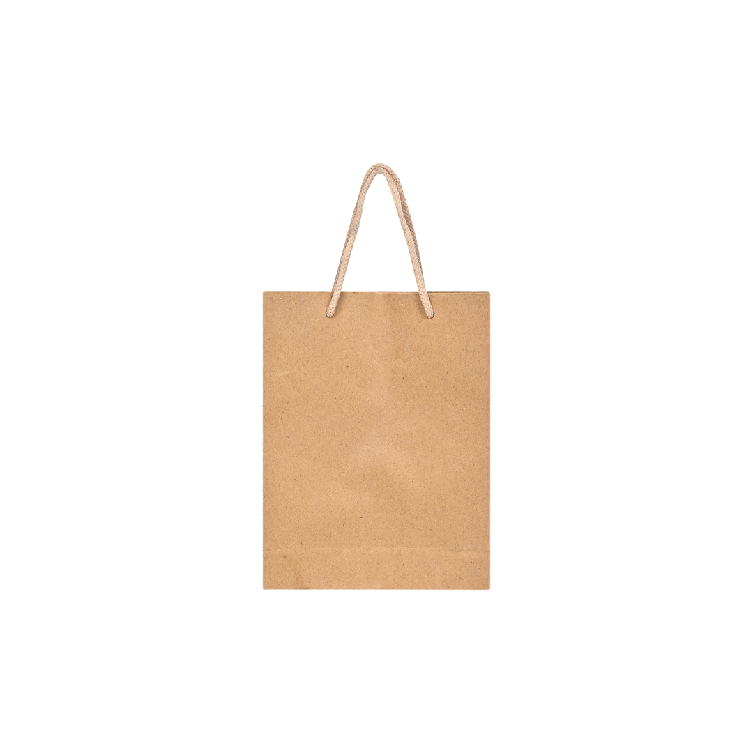 Compact kraft paper carry bag with twisted paper handles, ideal for small takeaway orders, desserts and gifting of lightweight items.